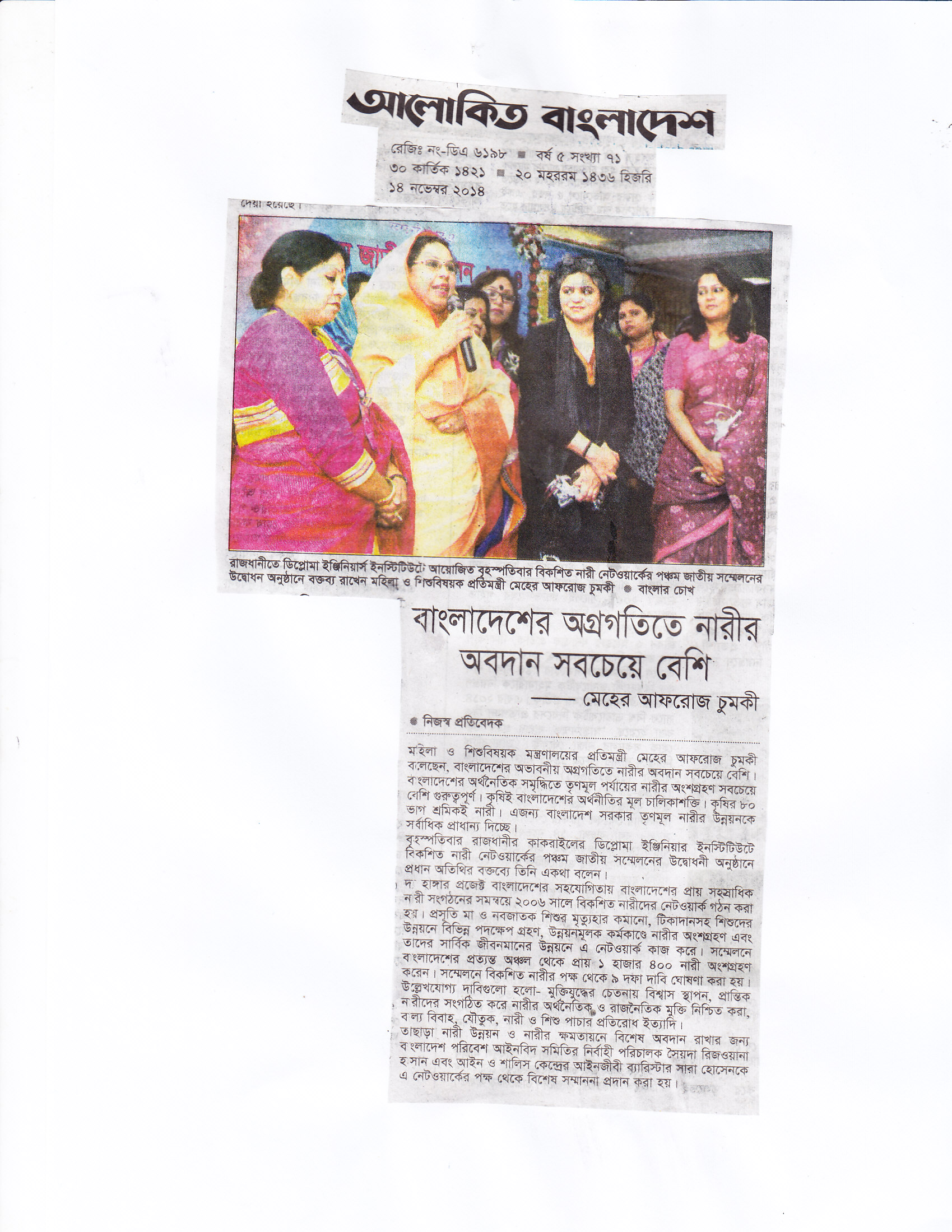 বিকশিত নারী নেটওয়ার্কের পঞ্চম জাতীয় সম্মেলনের পত্রিকায় প্রকাশিত সংবাদ: