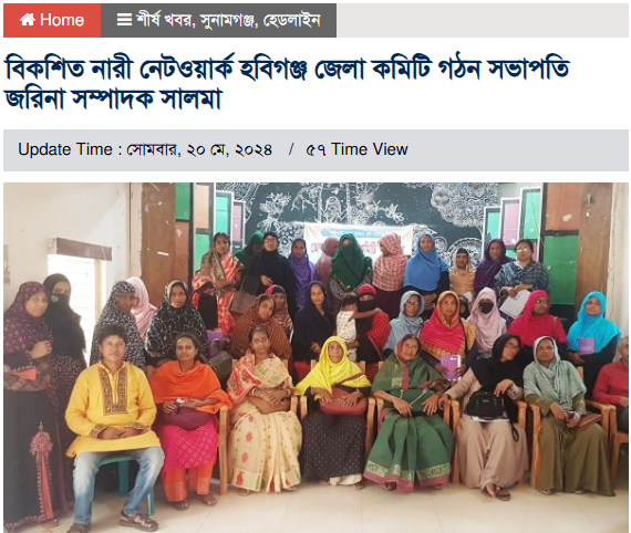 বিকশিত নারী নেটওয়ার্ক হবিগঞ্জ জেলা কমিটি গঠন সভাপতি জরিনা সম্পাদক সালমা