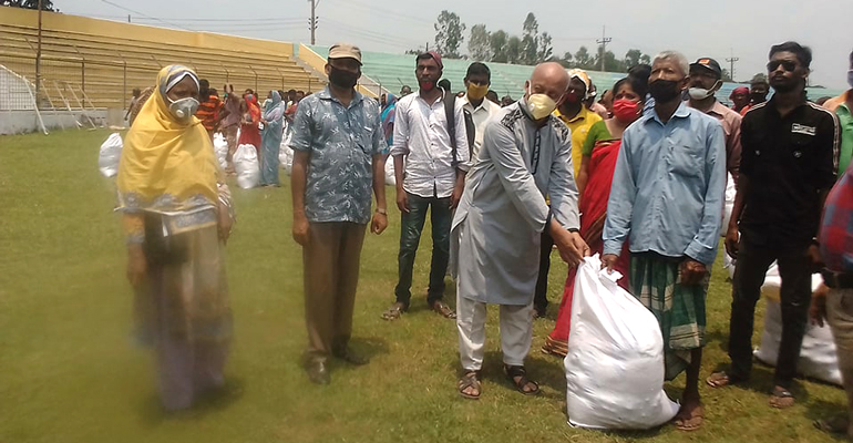 একই সাথে নাজমা বেগম নিজ উদ্যোগে এবং “অবলম্বন” সংগঠনের সাথে যৌথ আর্থিক সহযোগিতায় ১০ মে ২০২০ তারিখে বল্লমঝাড় ইউনিয়নের ৬ নং ওয়ার্ডে ২৫০জন অসহায় মানুষের মাঝে খাদ্য সামগ্রী বিতরণ করেছেন। (খাদ্য তালিকায় জনপ্রতি ১৫ কেজি চাল, ২ কেজি ডাল, ৫ কেজি আটা, ২ লিটার তেল, ৪ কেজি পেঁয়াজ, ২ কেজি ছোলা, ২ কেজি আলু ও ২ কেজি চিনি) ।