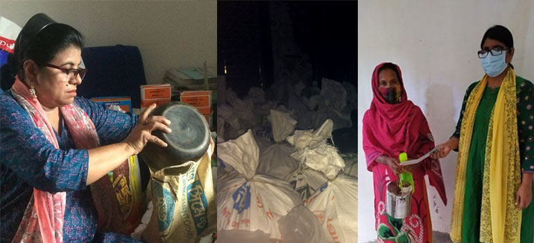 মানুষকে সচেতন করার পাশাপাশি তিনি বাঁশবাড়ী এলাকার গৃহবন্ধী হতদরিদ্র ২৫টি পরিবারের তালিকা করেছেন। এই পরিবারগুলোতে তিনি নিজে গিয়ে নগদ ১০০০ হাজার টাকা উপহার হিসেবে ২৫ জন নারীর হাতে তুলে দিয়েছেন। এছাড়া আরো ১০টি হতদরিদ্র পরিবারে খাদ্য সামগ্রী বিতরণ করেছেন (প্রতি পরিবারে চাল ১০ কেজি, ডাল ২ কেজি, আলু ৫ কেজি, তেল ২ লিটার, সাবান ২টি) ।
